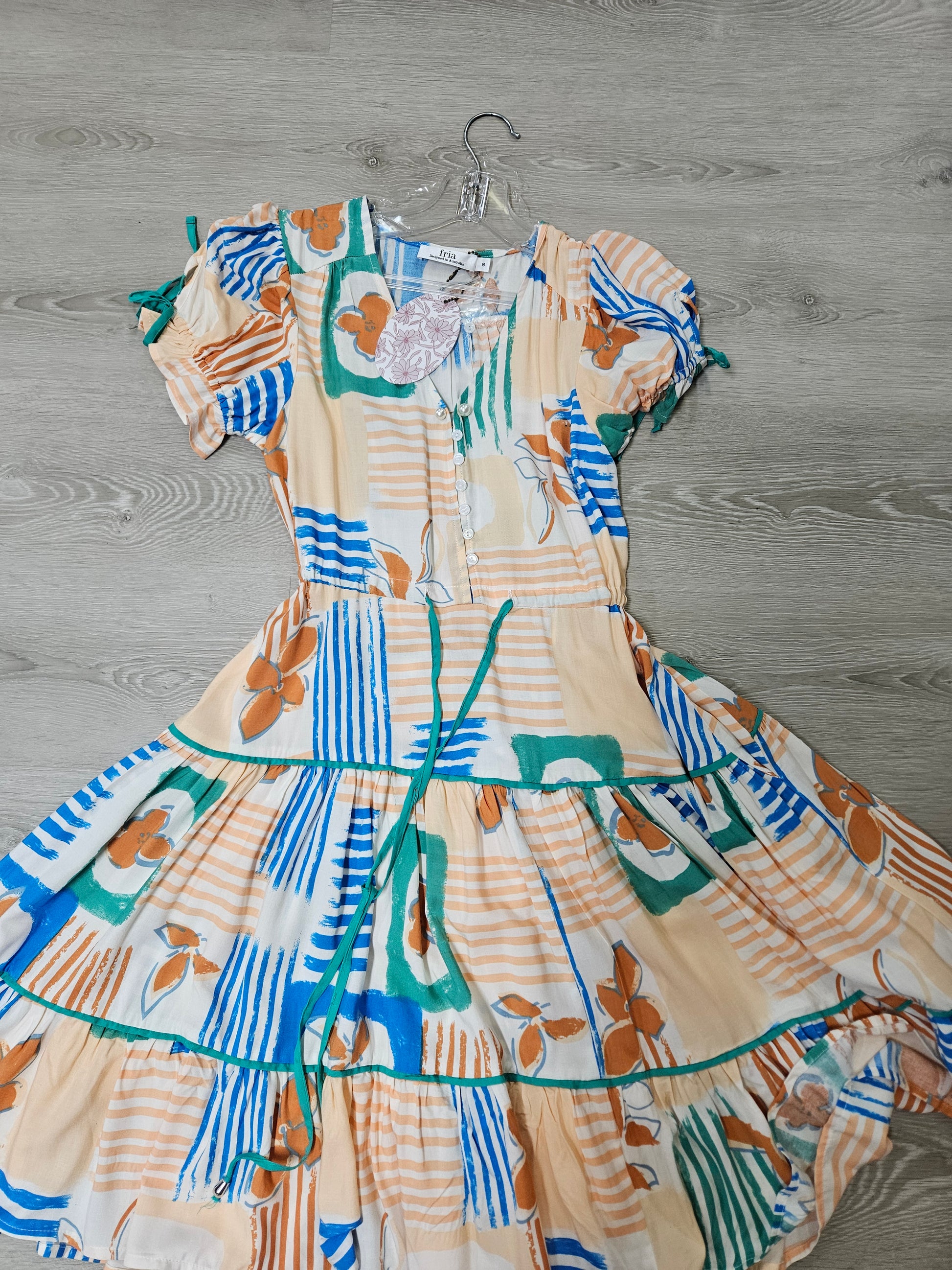Shareen Maxi dress in shades of light pink floral print, with lace details at the top front and back.